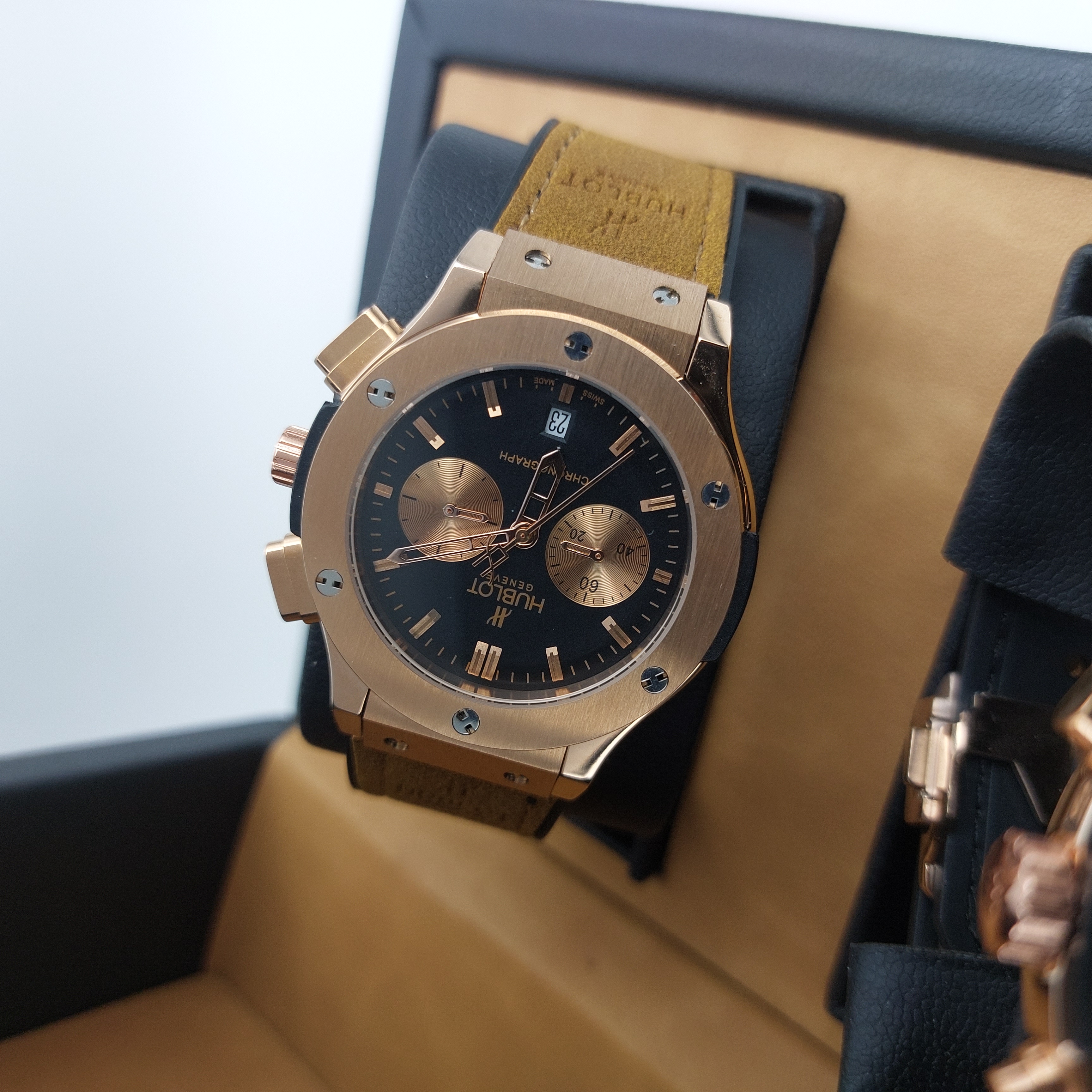 ساعت مچی ست هابلوت اسپرت رزگلد بند رابر جیر