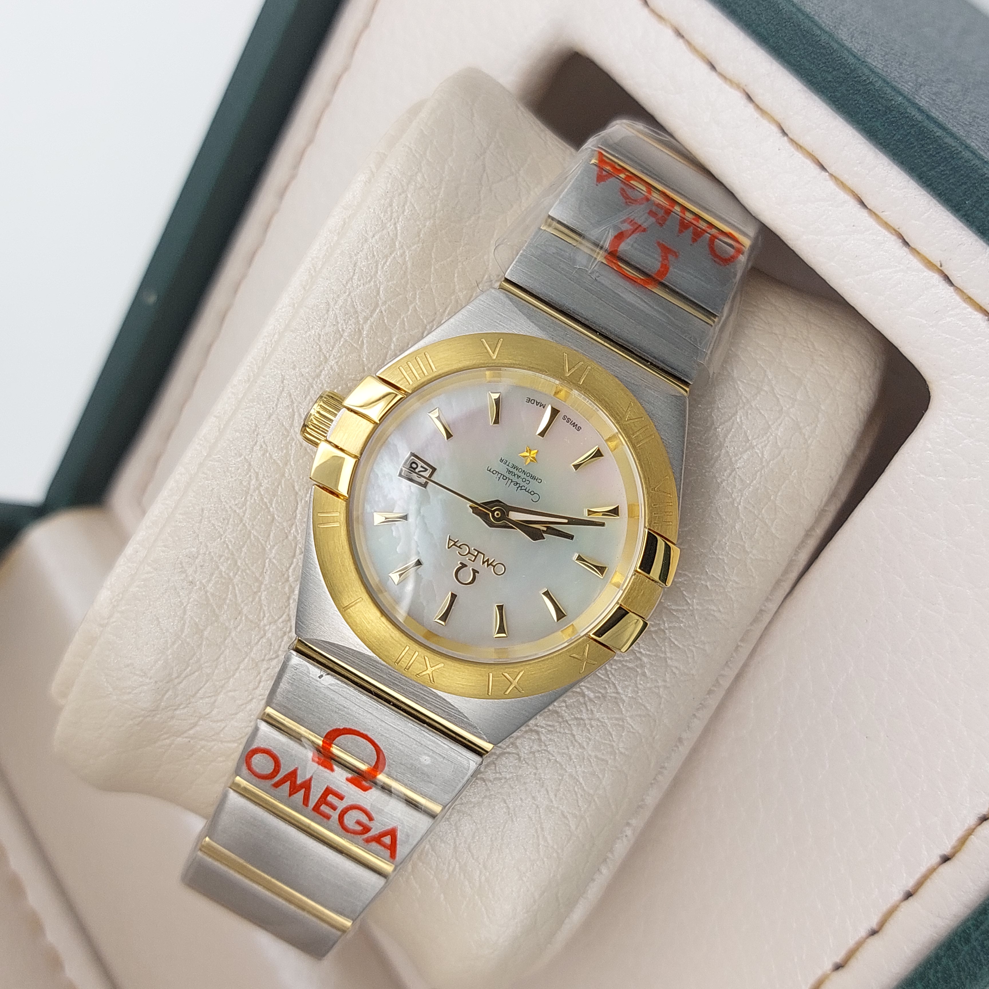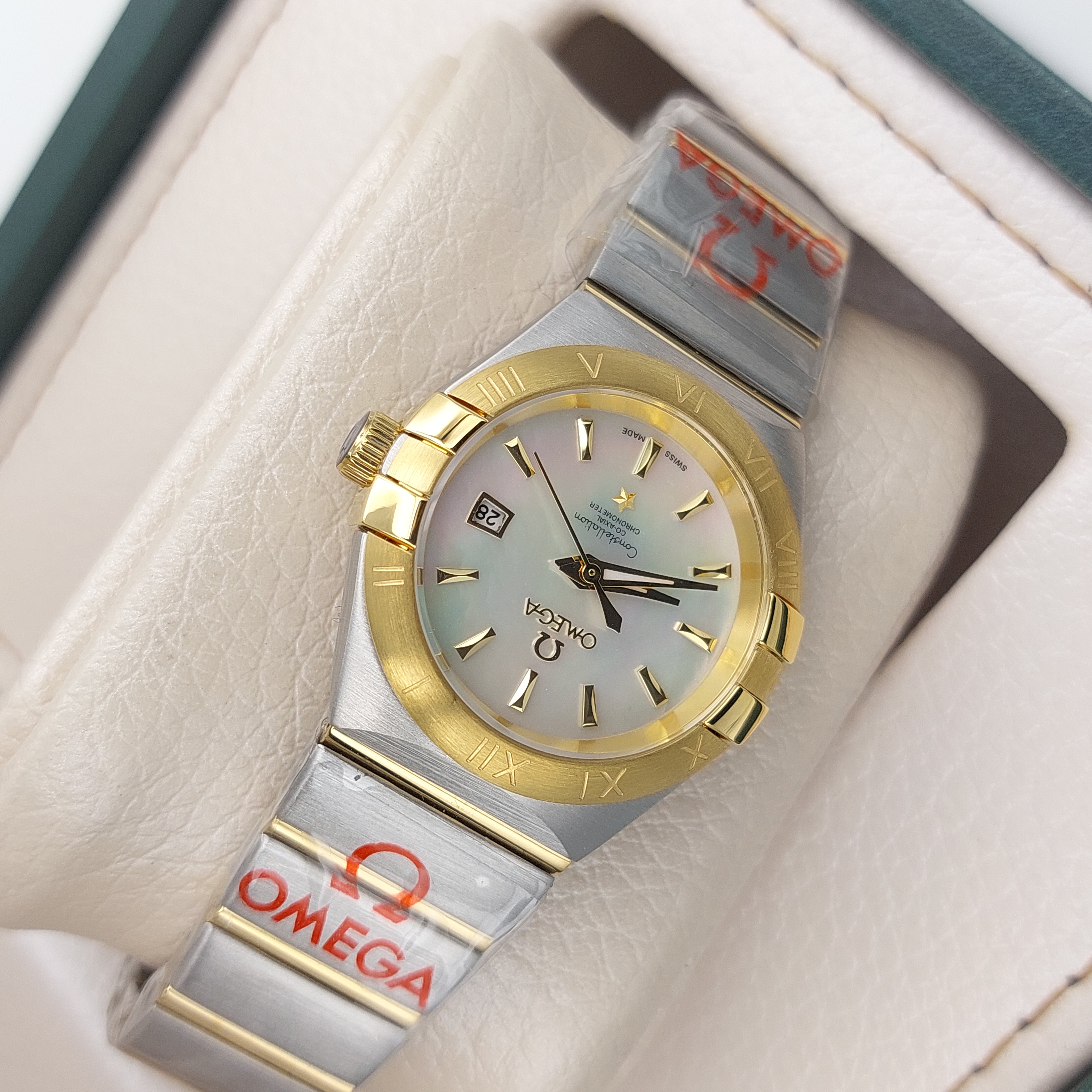 ساعت امگا کانسلیشن زنانه طلایی صفحه صدفی - Omega