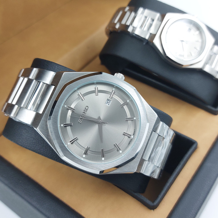 ساعت ست سیکو تمام استیل صفحه طوسی